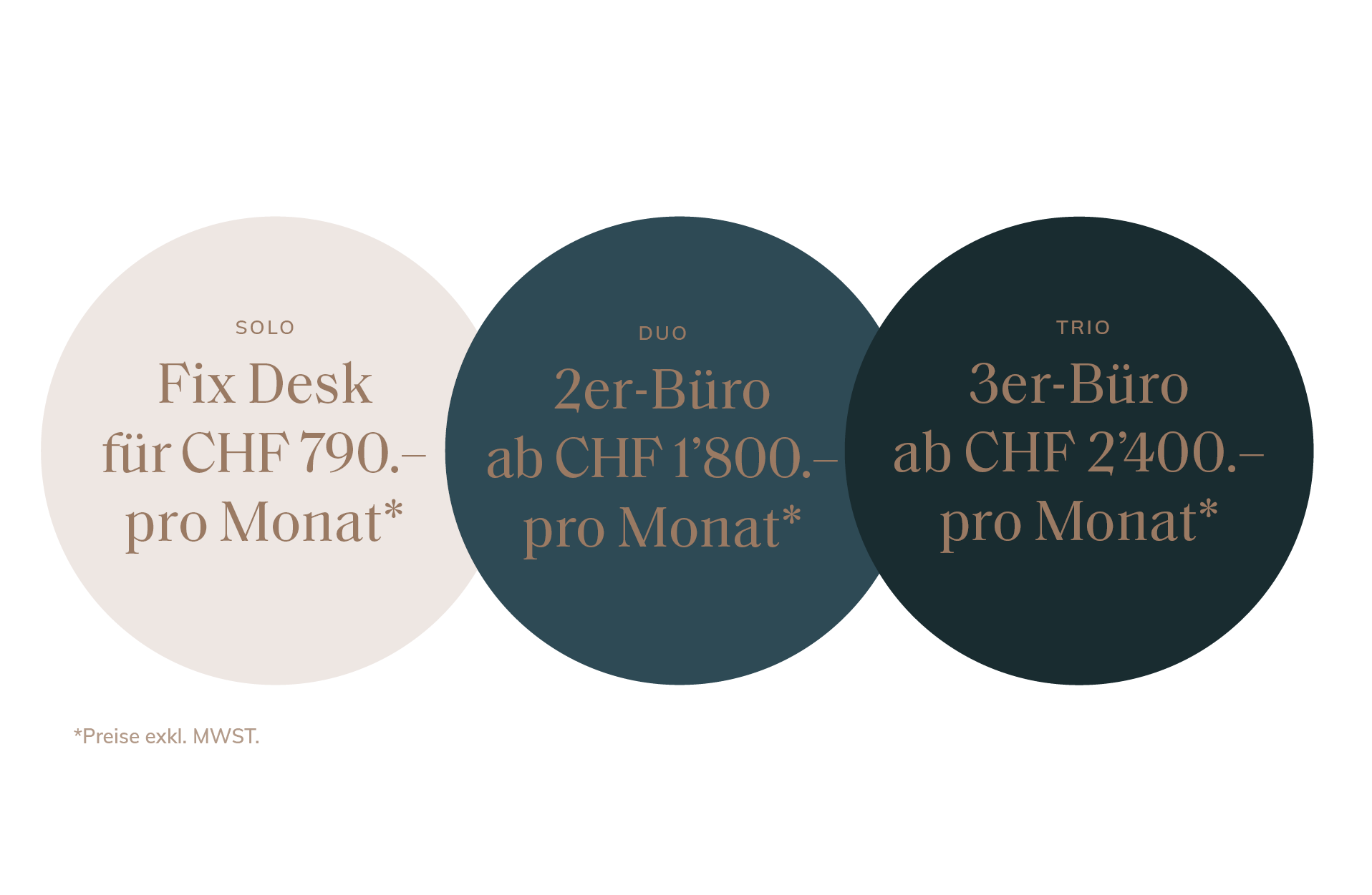 - 5 Stunden Sitzungszimmer-Benutzung pro Arbeitsplatz und Monat inbegriffen